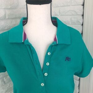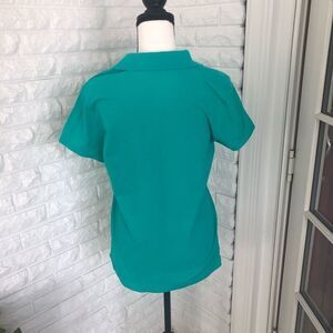 This super cute short sleeved polo could soon be your new favorite Spring add to your wardrobe. The color is simply stunning! The 5 sweet white pearl-like buttons center the neckline. The fabric is mostly cotton with a splash of spandex so it’s cool and stretchy! Never put into the dryer, this top is in perfect condition. Also listing same top in hot pink and a gorgeous blue. All XL. Update: the top listed in “gorgeous blue” has been sold.