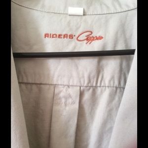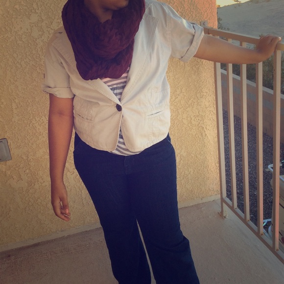 This blazer is a large medium, a creamy tan and perfect for a causal or formal event. Measurements can be provided upon request, the button can be undone, the sleeves can be unrolled. (Is that a word?) Let me know if you're interested!