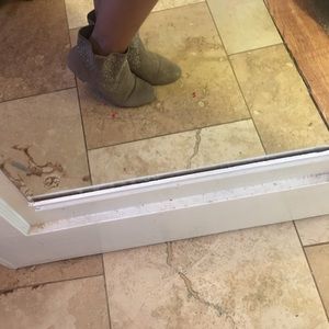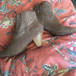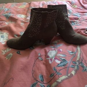 2.5 inch booties. Normal wear and tear. Super comfy to walk in.