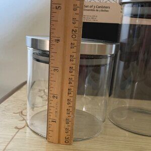 Short Stories Set of 3 Glass Canisters with Stainless Steel Lids Dishwasher Safe