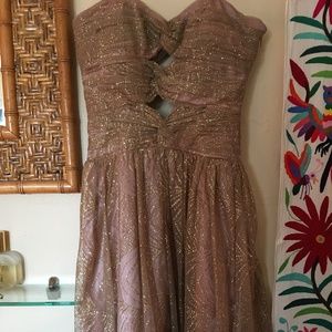 Gold glitter pattern overlaying dusky pink layer with a satin sheen.