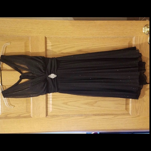 Short black shimmery dress ties around neck