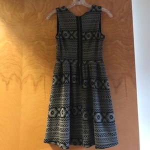 Mini, black and grey pattern, stretchy material. Very flattering on! Size small, tag faded.