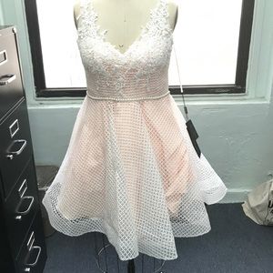 Beautiful blush short dress with gorgeous pearl and beaded details. In new condition with tags! Available in different sizes