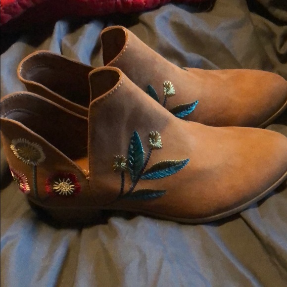 ๐cute boots near worn near touch the ground outside only tried on I have the black ones also and only wear them they are so comfy ๐๐๐
