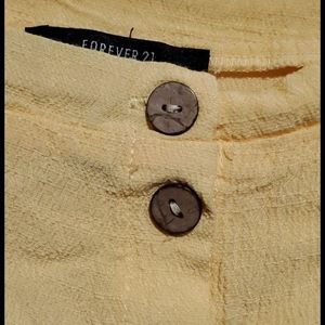 Soft yellow blouse, with brown buttons (the buttons are just for show) True to size, Small. This shirt has no stretch to it. Only worn once.