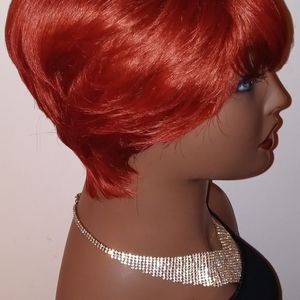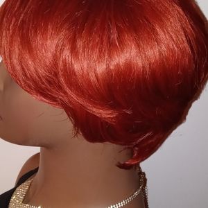 this is a brand new short pixie wig The COLOR IS COPPER very cute. please note this is a synthetic wig no heat required