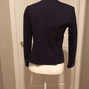 European color combo of navy with black velvet ribbon makes this a perfect “go to “ jacket with jeans or a black pant or skirt