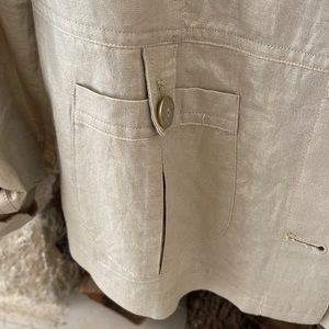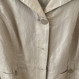 Size 1 gold metallic shirt jacket with button closure. Dress up or down. Versatile linen and cotton .
