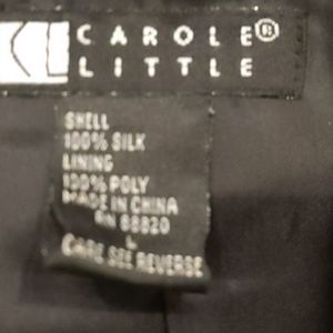 Carolyn Little 100%silk jacket. Jacket is dry clean only. All buttons in tact. This pairs well with several colors and is quite smart. Wears we'll with slacks,skirts,and jeans.