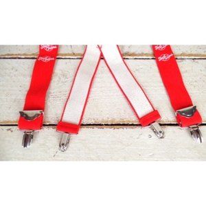 Short orders red stretch clip suspenders/wide red braces/red lumberjack suspenders