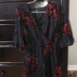 In good shape! Only wore once. Sleeves are half sleeves and see through