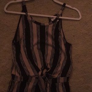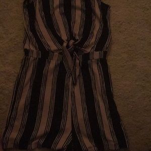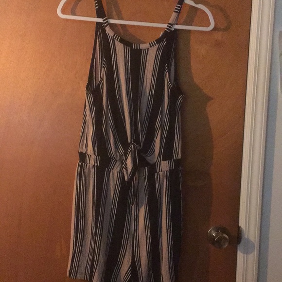 Short black and beige romper with keyhole tie / cutout around belly button. Super comfy, never worn