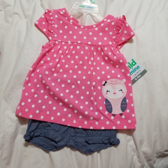 Polka dot with cute owl shirt and jean shorts, perfect for spring time!