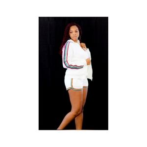 Short set with multi color stripes on the side