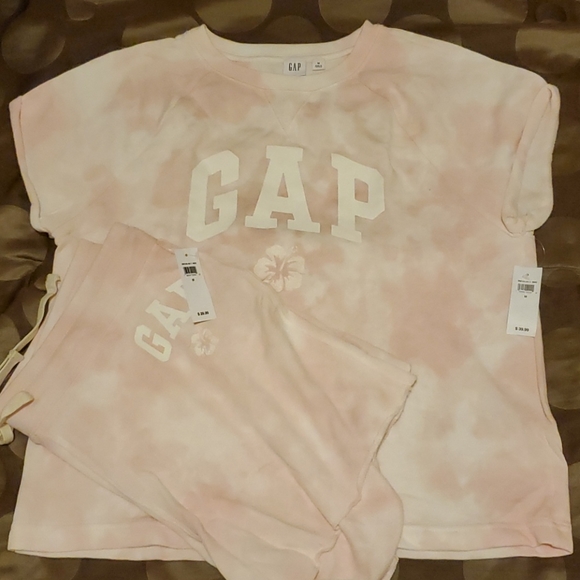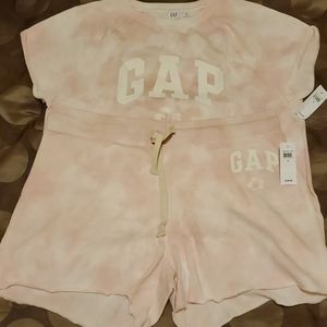 Pink and white semi tye die GAP short set. Size medium but runs big. Can fit someone who's a large and maybe XL. Depending on ones body frame and how one likes their clothes to fit. Very stretchy material. See other set pictures with it on. I normally wear an L/XL, but this medium fits