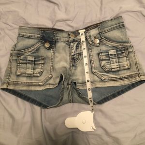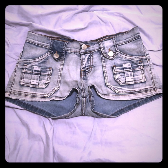 Light blue jean short shorts