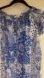 Lightweight, flutter sleeve blue, and white print blouse. Extremely comfortable and light! Keyhole with tassel tie in front. Ruffle layered sleeves. Long tunic style.