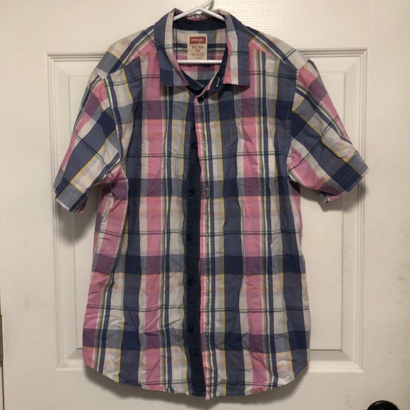 Pink and blue boys short sleeve button down