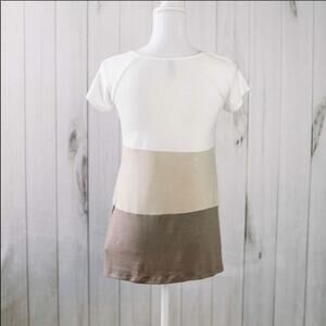 Short sleeve color block tan white medium