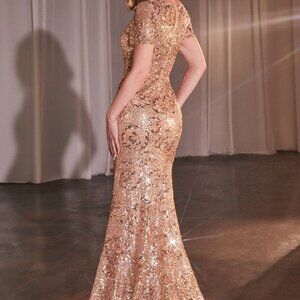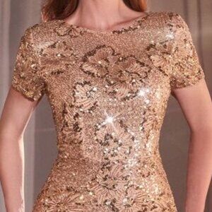 Short sleeve formal dress.Mother of the bride/groom rose gold party fitted gown