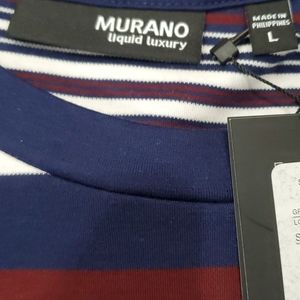 Short sleeve men's striped crew neck tee by Murano liquid luxury in size Large