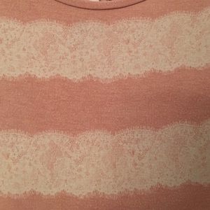 Short sleeve pink and white striped top. Very stretchy and comfortable. White stripe is lace detail (not actual lace.. Just design).