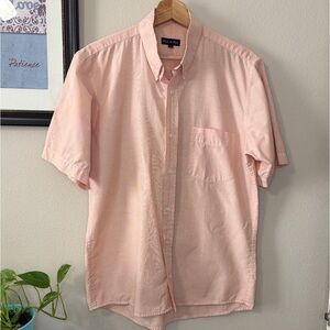 Short sleeves Shirt Mens large Cotton Linen Button Down Pink Casual
