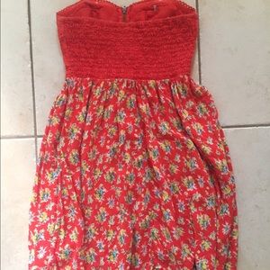 Lovely, red floral dress. Worn a few times, but in excellent condition. Model is 5'9" so the dress is a little short on her.