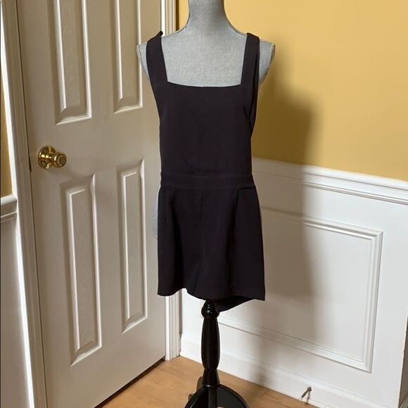 Cute one clothing overalls have a side zipper with pockets. They are a brownish charcoal gray color. 100% polyester. Waist flat across is approximately 17”. Length of shorts is 13”. Length without straps is approximately 23”. Strap to top of garment is 8”. Two button holes for adjusting. Straps can be crisscrossed.