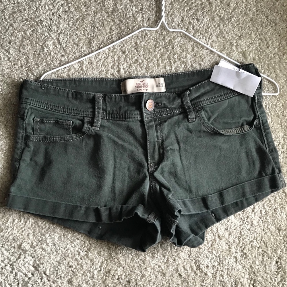 Dark dark green shorts. No stains or tears.