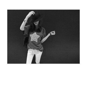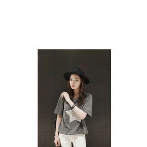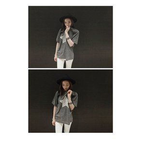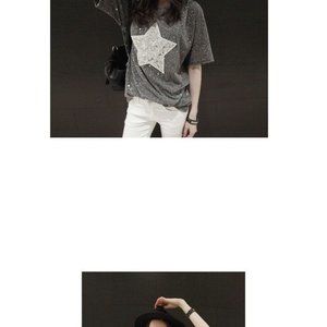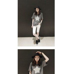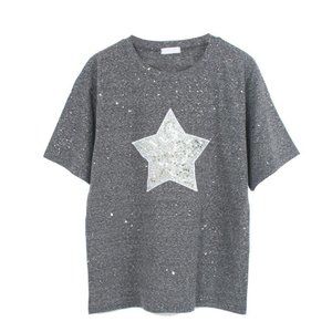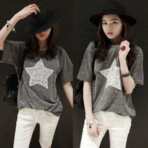 Short-Sleeve Star Printed Glitter T-Shirt Tee Size Small Gray
