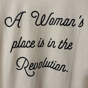 Cream short sleeve statement tee. "A Woman's place is in the Revolution." Size small.