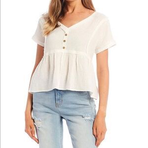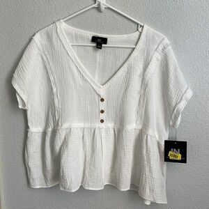 NWT I.N. San Francisco Short Sleeve Babydoll Top Loose fit Flounced high-low hem 10% cotton Size Large
