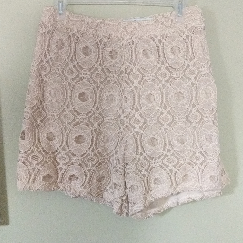 Tan dress shorts with elastic waist