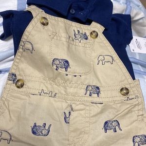 Brand new has two strap buttons on the overalls and two side buttons on the overalls over alls have 4 snap leg closures onsie can com apart from