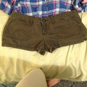 These brown shorts are lightly worn with pockets on front and back. They are size 3 and Hollister. will negotiate price!