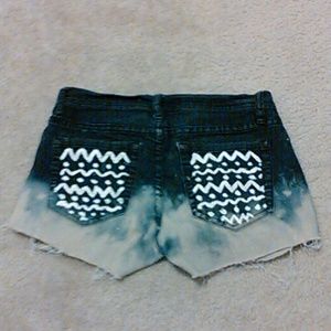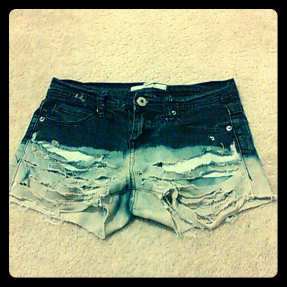 Diy. Bleached with rips. It is very fashionable and in excellent condition for a diy item. They are high cut shorts, and the ends are bleached. Retailers sale similar item for $50..