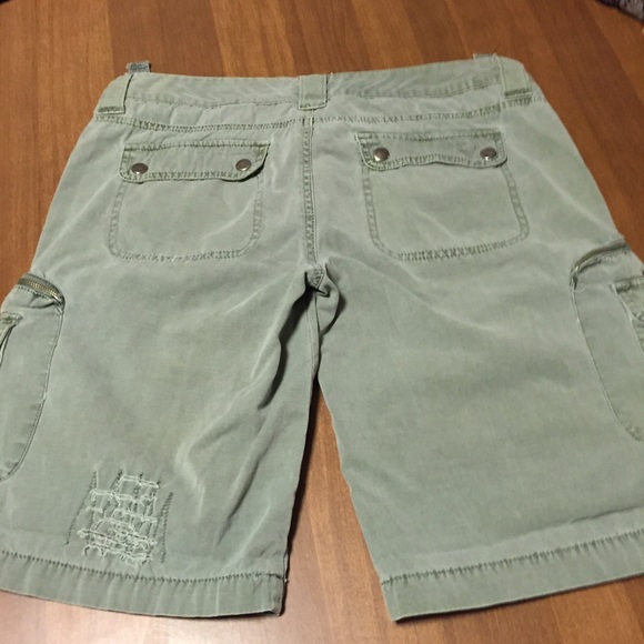 Army green cargo/utility shorts. Plenty of storage! These are the easiest shorts to put with anything!