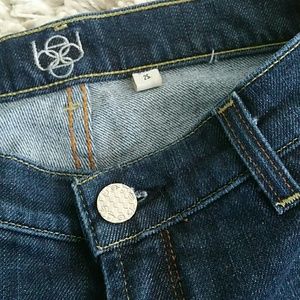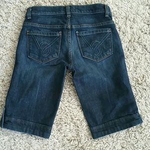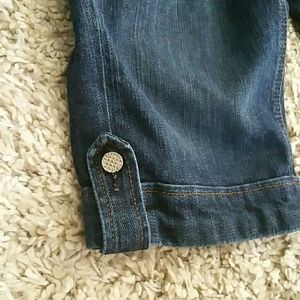 Dark denim shorts with light whisker. These are adorable and worn only once! Lots of cute details! Can be dressed up with heels or wedges! They hit a few inches above the knee.
