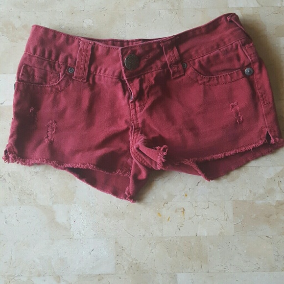 These are dark red shorts, I love the unique color of these shorts. 100% Cotton. Adorable front button.