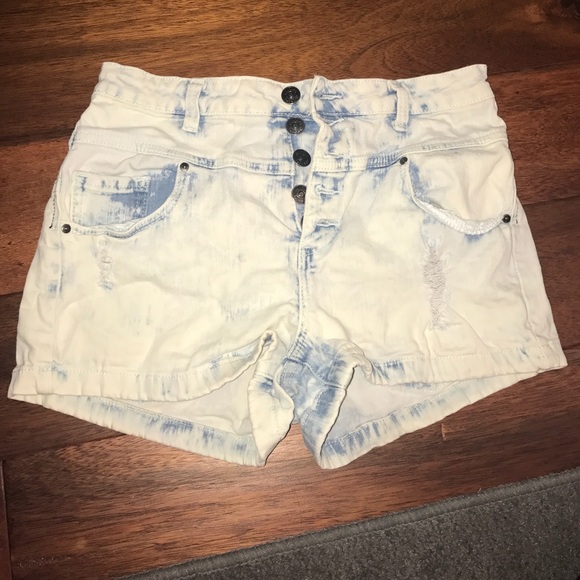 High waisted shorts. Lightly washed blue