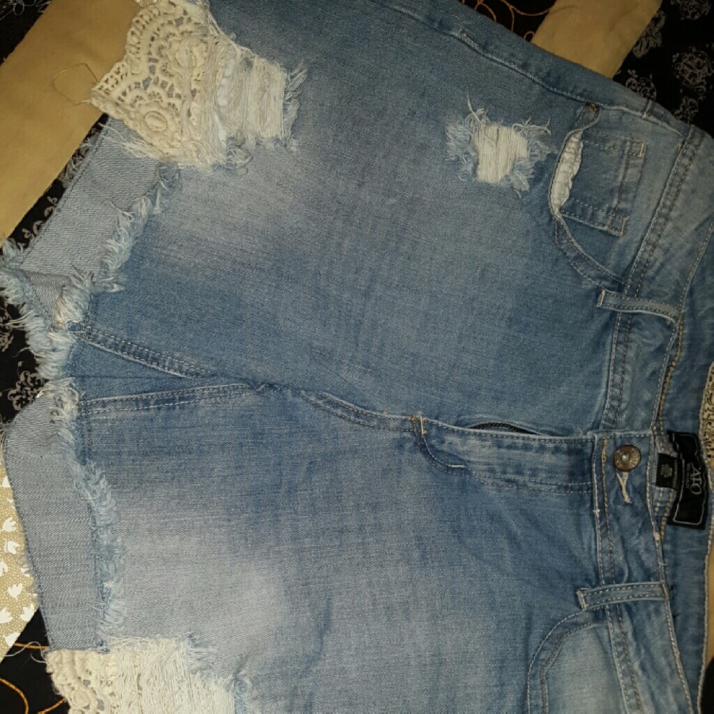 Woman's denim with crochet that hangs out from under the ham. So cute.