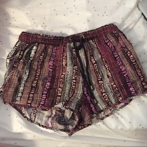 Aztec patterned streatch shorts with drawstring waist and front and back pockets
