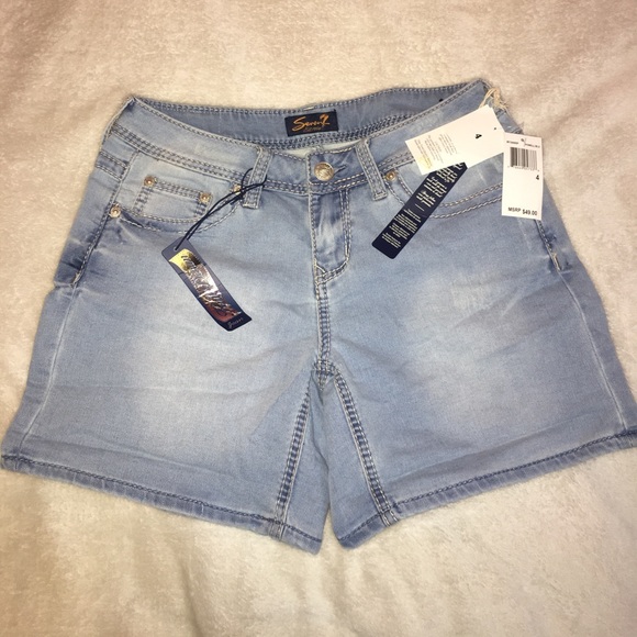 Light denim shorts with embroidery on back pockets