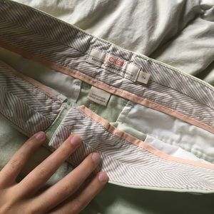 They're a light clean tint colored shorts. They're a comfy fit. They're khaki like. Barely worn. They're approximately 11 inches from top to bottom in the front & 13 inches in the back from top to bottom.