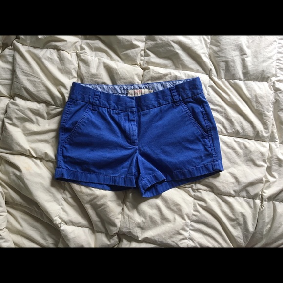 They're a dull blue colored shorts. They're khaki like. They're barely worn. They're approximately 11 1/2 inches from top to bottom in the front & 13 1//2 inches in the back from top to bottom.