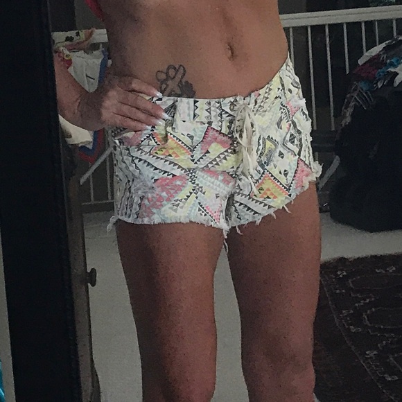 Billabong shorts. Fun flirty print with drawstring closure. cut the size tag out because it itched my back. But this is a typical size xs/s for surf brand clothes. Size 4 estimate