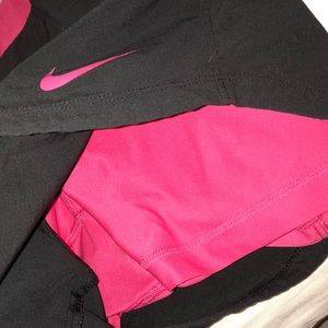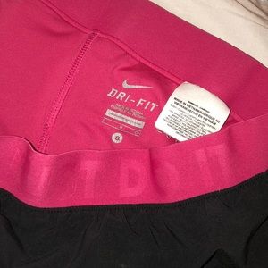 Hot pink spandex underneath and a dark gray dri fit material over