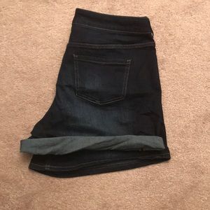 These jean shorts can be worn cuffed or straight. They have some stretch and are a comfortable length. Purchased as a between size so they’re in excellent condition. Smoke free home.
